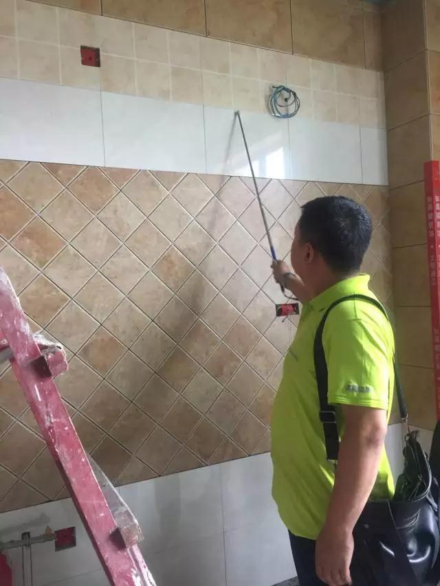 主材部張經理正在做墻磚空鼓檢測